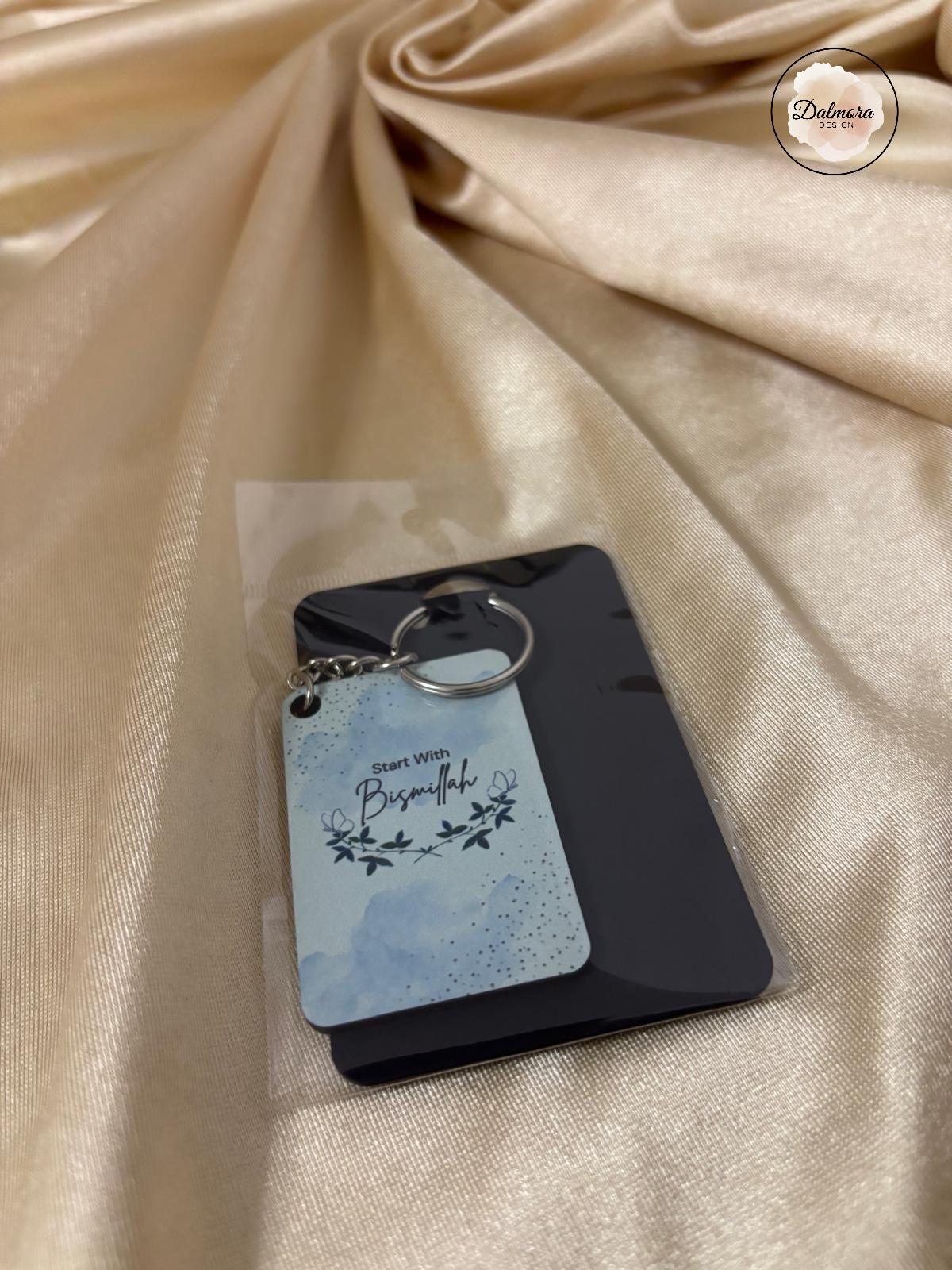 Bu zarif “Start with Bismillah” anahtarlık, pürüzsüz ahşap bir yüzey üzerine baskılı tasarımıyla Allah'ın adıyla başlamayı hatırlatır. Hafif ve dayanıklıdır; anahtarlar, çantalar veya araba için idealdir.