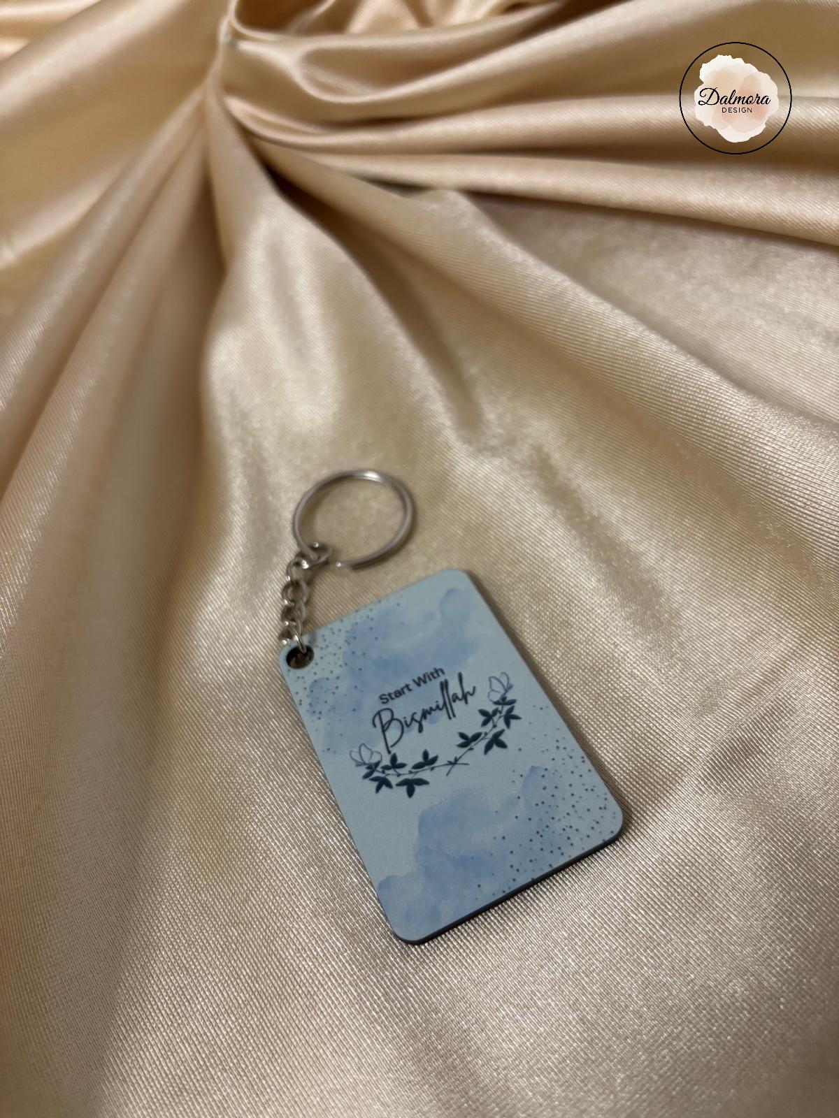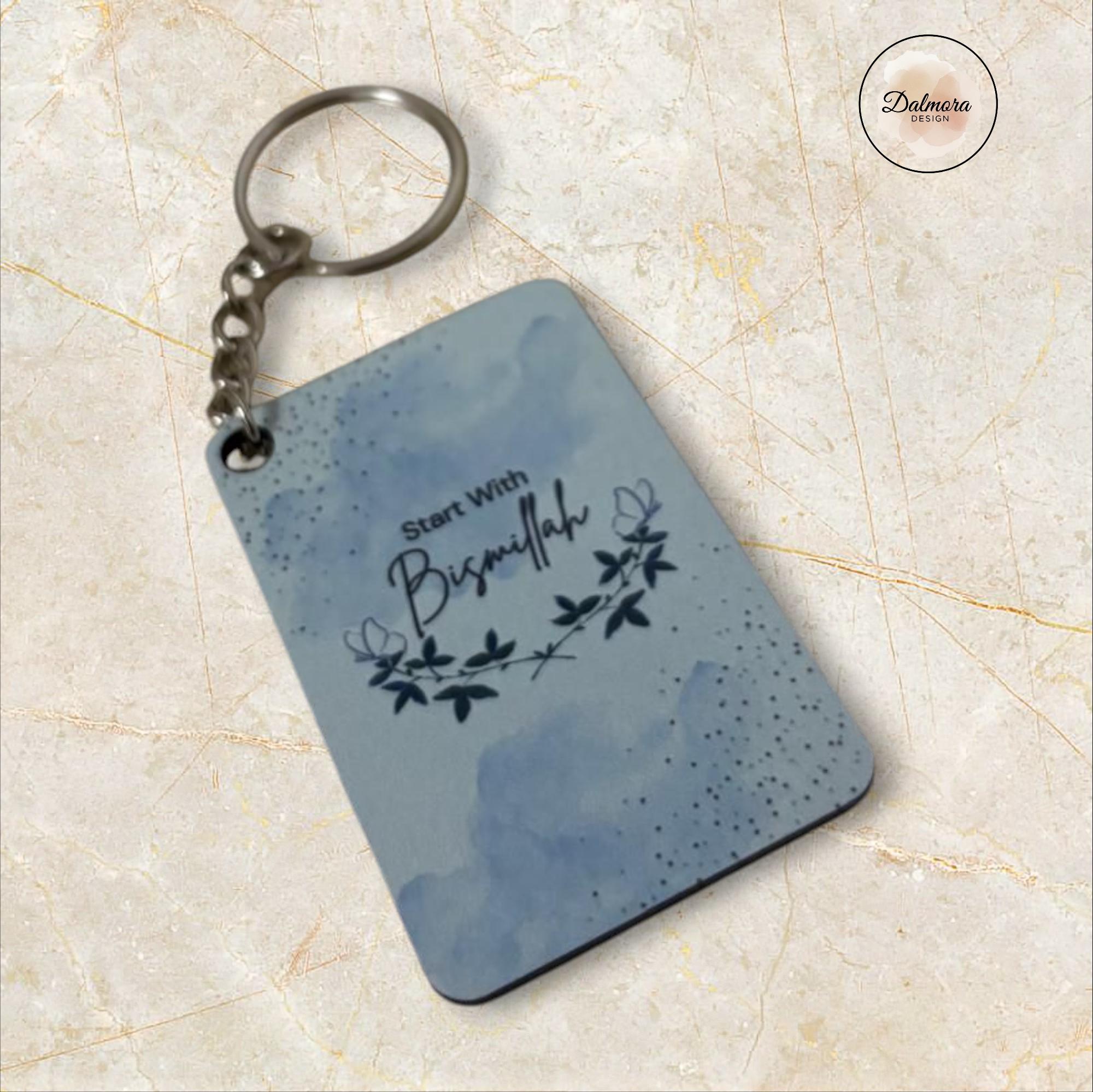 This stylish "Start with Bismillah" keychain is printed on a smooth wooden panel and reminds you to begin everything with the name of Allah. Lightweight and sturdy, it's perfect for your keys, bag, or car.