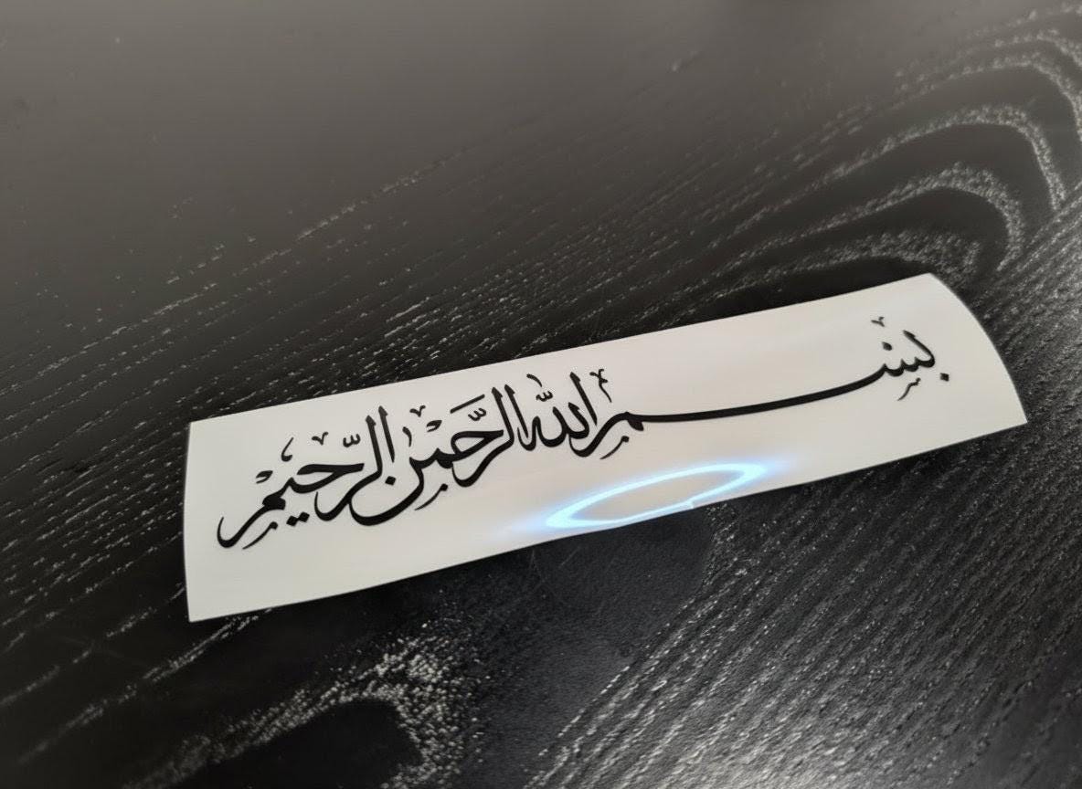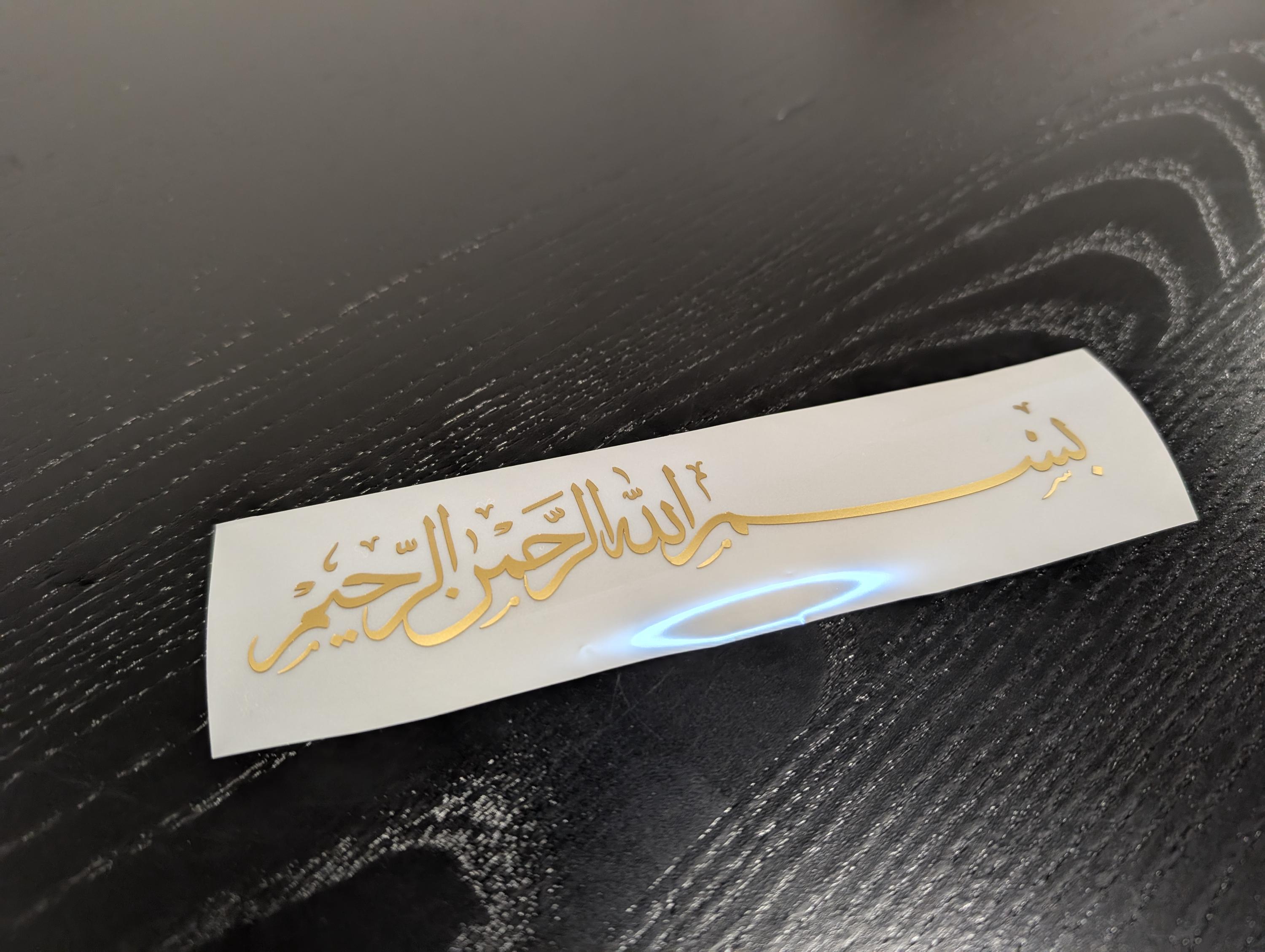 Elegant Arabic vinyl sticker with the text “Bismillah ir-Rahman ir-Rahim” — which means “In the name of Allah, the Most Gracious, the Most Merciful.”