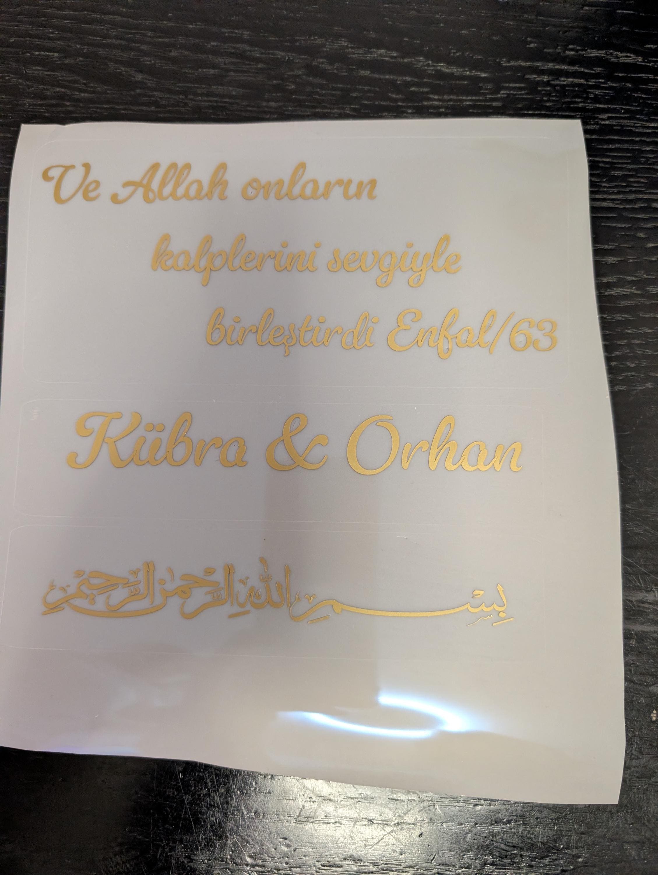 Maak jouw item extra persoonlijk met onze op maat gemaakte permanente vinyl tekst. Perfect voor cadeaus, glazen, dozen, bruiloften, bedankjes en decoratie.