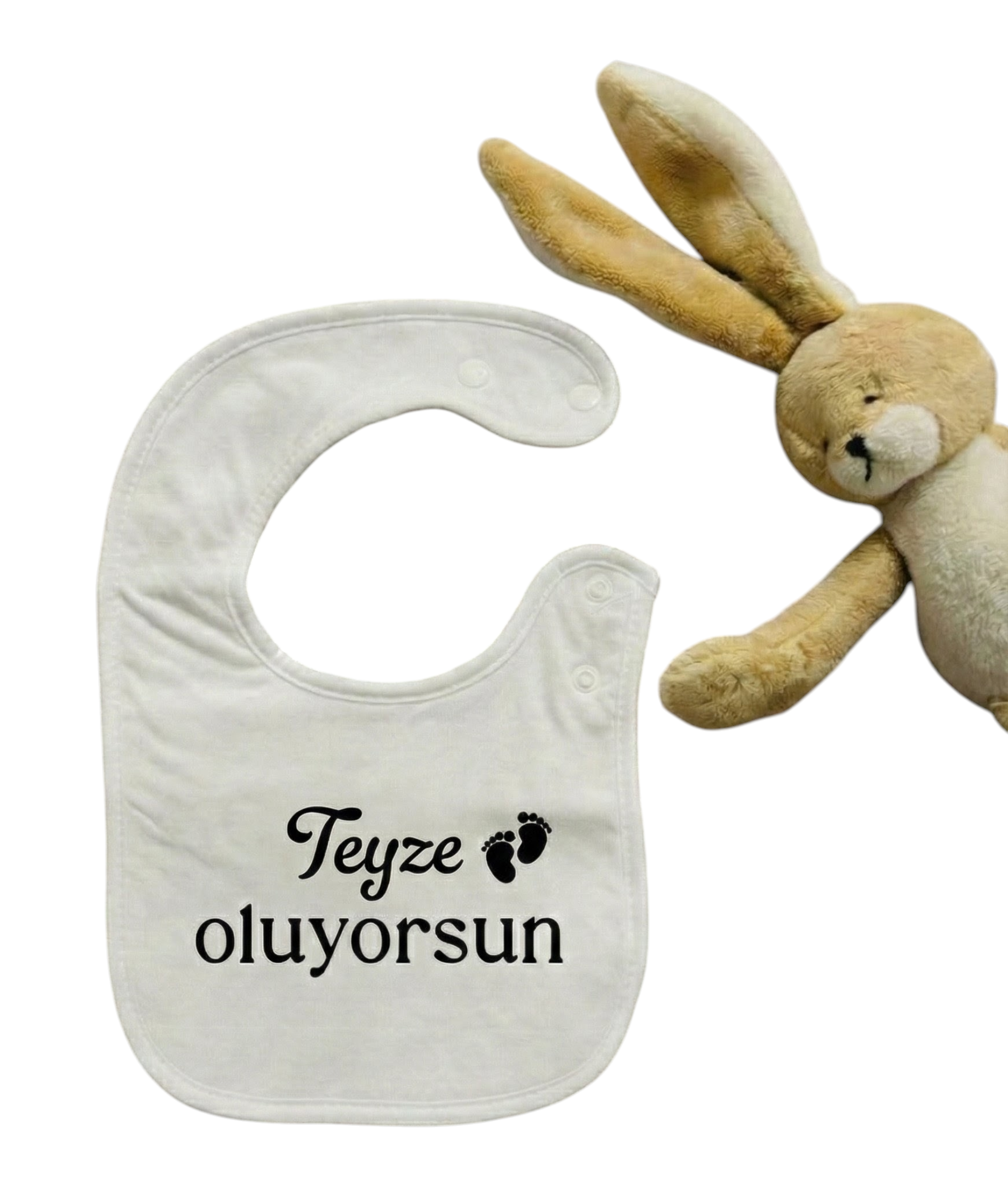 Verras je familie met dit stijlvolle witte slabbetje. Met teksten als "Baba oluyorsun" (Je wordt papa), "Dede" (Opa) of "Hala" (Tante) is het nieuws in één keer duidelijk. Het is de perfecte "prop" voor een foto-aankondiging of om als cadeautje in te pakken voor de aanstaande familieleden!