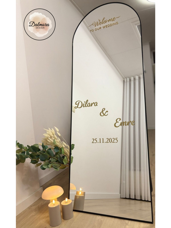 Stijlvol en Aanpasbaar De spiegel is standaard voorzien van een moderne zwarte rand voor een strakke, chique look. Zoeken jullie een meer klassieke of romantische uitstraling? In overleg is de rand ook in het goud verkrijgbaar, zodat de spiegel naadloos aansluit bij jullie thema.